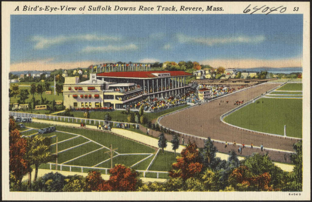 A bird’s-eye-view of Suffolk Downs Race Track, Revere, Mass.. Tichnor Bros. Inc.,
